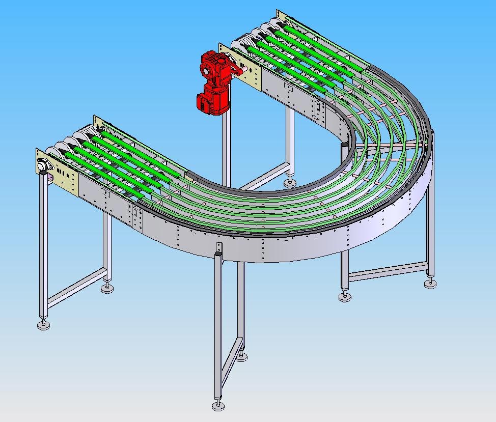 10/12/2019Convoyeur à bande modulaire une courbe de 180 ° et rayon de courbe interieur de 1 Mètre