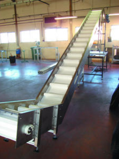 27/03/2026Convoyeur élévateur à bande pour décharger à une hauteur de 2m50 des sacs de textile de 15kg,nous traitons environ 20 tonnes/ mois. Largeur du convoyeur 60cm.