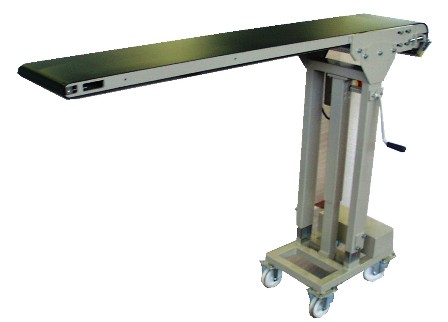 Nous recherchons un convoyeur à bande avec un réglage en hauteur par manivelle pour avoir un réglage précis et rapide (hauteur réglable entre 850 mm et 1250 mm).