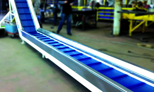 Demande de prix pour Convoyeur à bande à tasseaux double inflexion