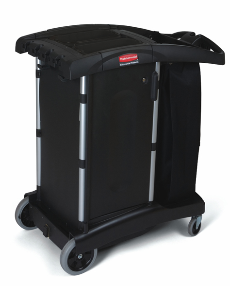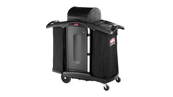 - Un vaste espace de stockage avec des bacs et des caddies en option permettent au personnel de se réapprovisionner avant de nettoyer, augmentant ainsi la productivité en éliminant le temps de recherche de fournitures supplémentaires.