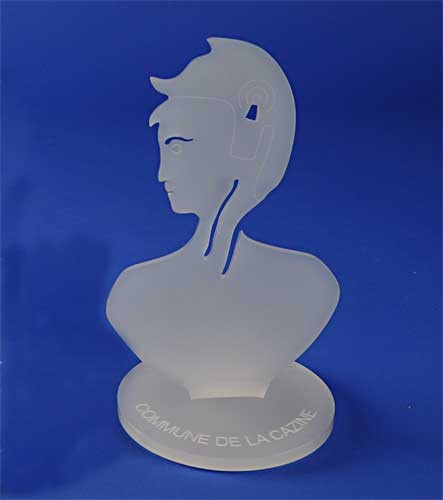 Ce buste Marianne est fabriqué en plexiglas cristal ou Dépoli satiné (selon modèle) de 10 mm d’épaisseur.
