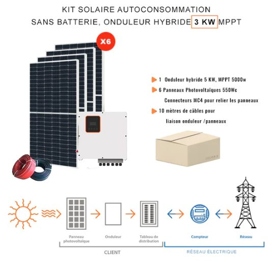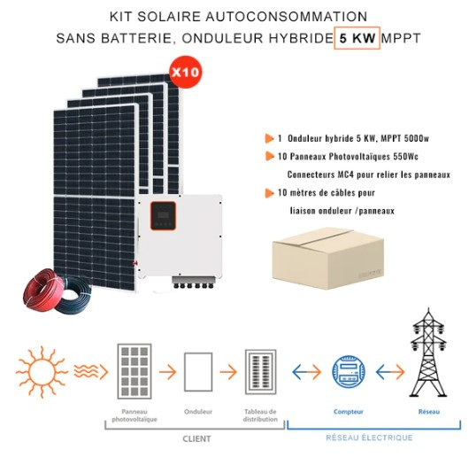 Il est équipé de 10 m de câble pour lier l'onduleur et les panneaux.