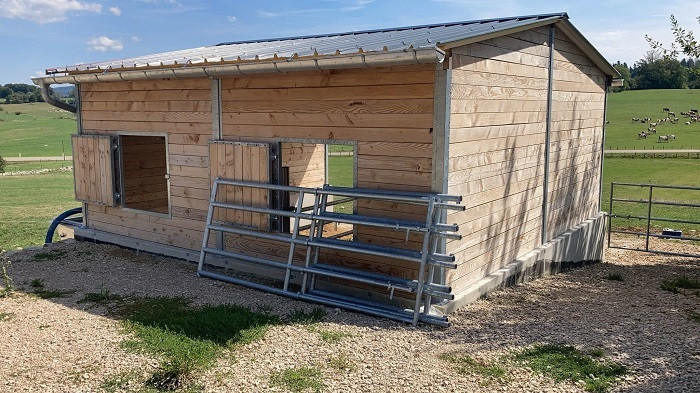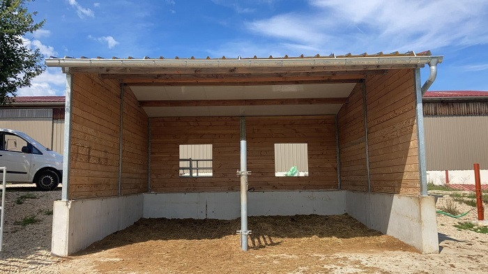 Cet abri à fourrage poteaux métal permet de stocker le foin afin de les protéger contre les intempéries.