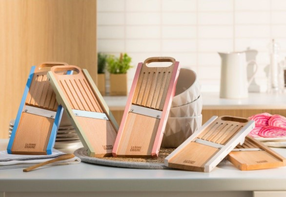 Cet ustensile de cuisine traditionnel assure une largeur de coupe allant jusqu'à 75 mm et il est disponible en plusieurs coloris.