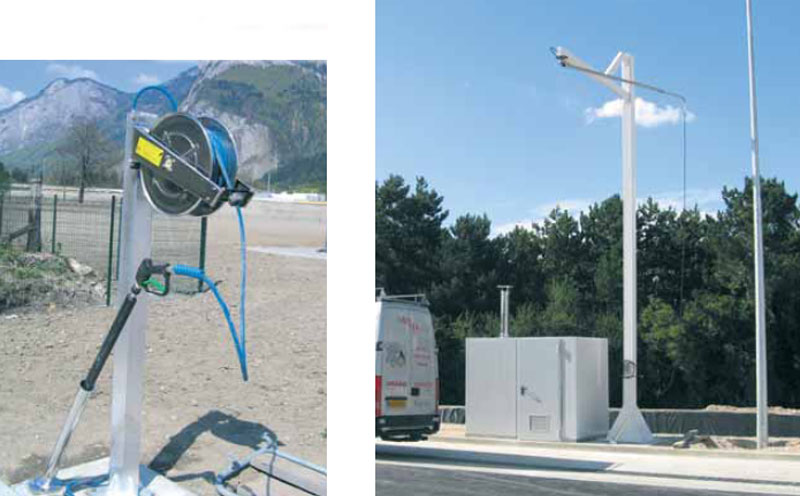Ces stations de lavage sont conçues pour éviter les déplacements et les manipulations sur les nettoyeurs qui sont souvent générateurs de dysfonctionnement. Ce système fonctionne uniquement avec les commandes à distance positionnées à l’extérieur du local technique, à l’endroit décidé par le client. L’installation est entièrement déplaçable et évolutive, ce qui laisse une liberté complète sur le choix de l’emplacement.