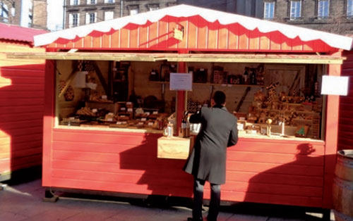 20/12/2017On cherche un chalet en bois avec 2 ouvertures latérales pour de la vente de bouteilles de champagne sur env 3m/2m. Tarifs avec vous modèles. Merci.