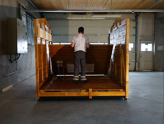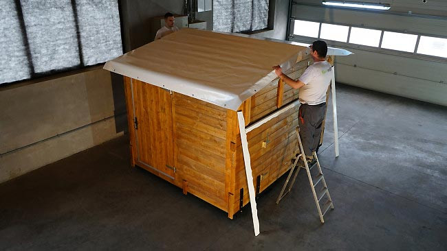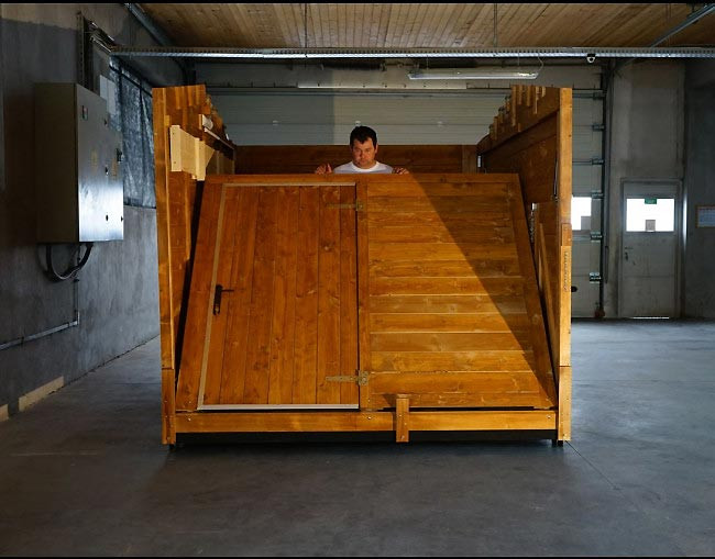 En 2015, nous avons démarré la production des chalets de Noël pliables en utilisant notre expérience professionnelle acquise avec la construction des maisons en bois, et nous avons ainsi réussi à concevoir et à fabriquer une construction si bonne que la production des chalets de Noël pliables constitue l’activité principale de notre entreprise.