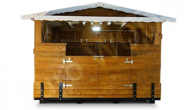 Le chalet est équipé de fenêtres et de portes de service, assurant une bonne ventilation, un accès facile et une interaction aisée avec vos clients.