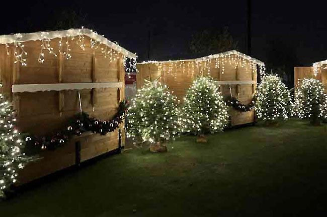 L'utilisation du bois d'épicéa pour les parois ajoute une touche chaleureuse et authentique, typique des marchés de Noël.