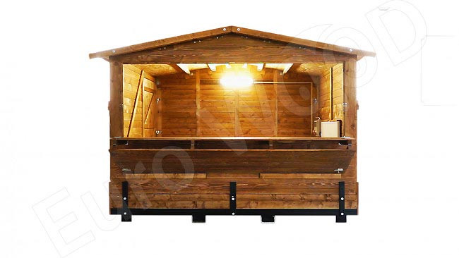 Le chalet dispose d'une fenêtre de service composée d'une seule pièce. La partie basse de cette fenêtre est entièrement dédiée à un comptoir de vente, cela facilite les transactions et améliore l'interaction avec les clients.