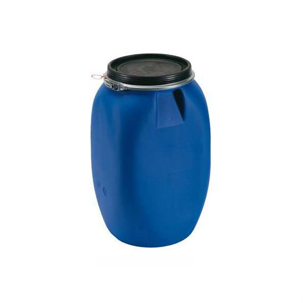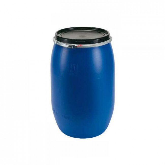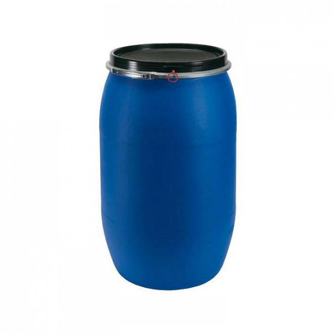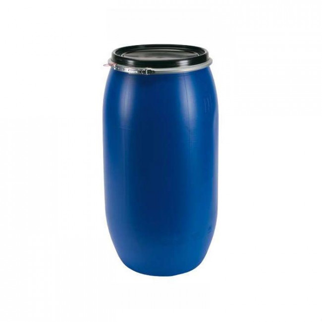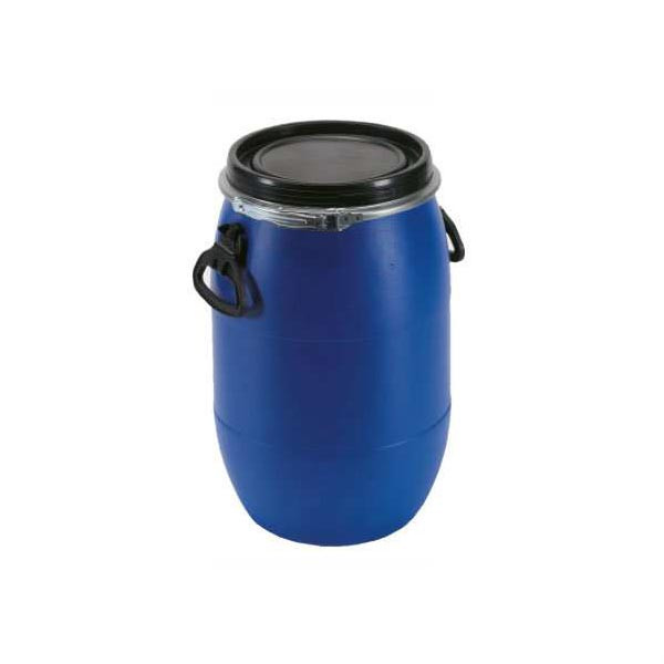Le fût bleu avec couvercle noir, joint en caoutchouc et anneau de fermeture à levier en acier galvanisé assure une fermeture fiable, scellable et étanche.