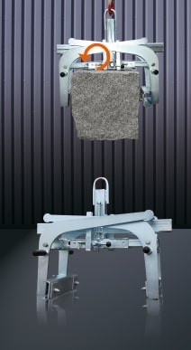 Cette pince de levage à 3 griffes est conçue pour un transport et une pausesécurisés des blocs irréguliers.