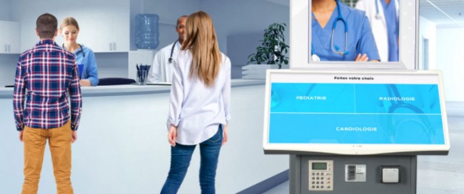 La borne d'accueil et préadmission hôpital est une borne interactive qui s'adapte tout particulièrement à l'accueil et la préadmission des patients dans les hôpitaux et cliniques.