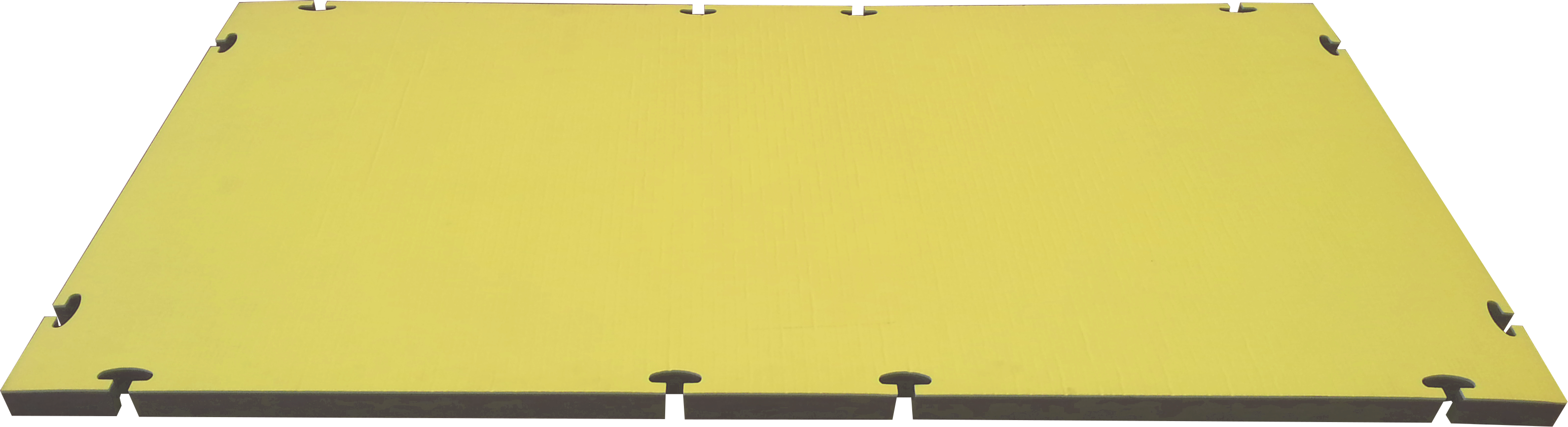 La mousse réticulée de polyéthylène à cellules fermées et le revêtement en PVC gaufré paille de riz ainsi que la présence de bords et angles arrondis étudiés pour reproduire la sensation d'un tatami traditionnel assurent une sécurité et confort durables.