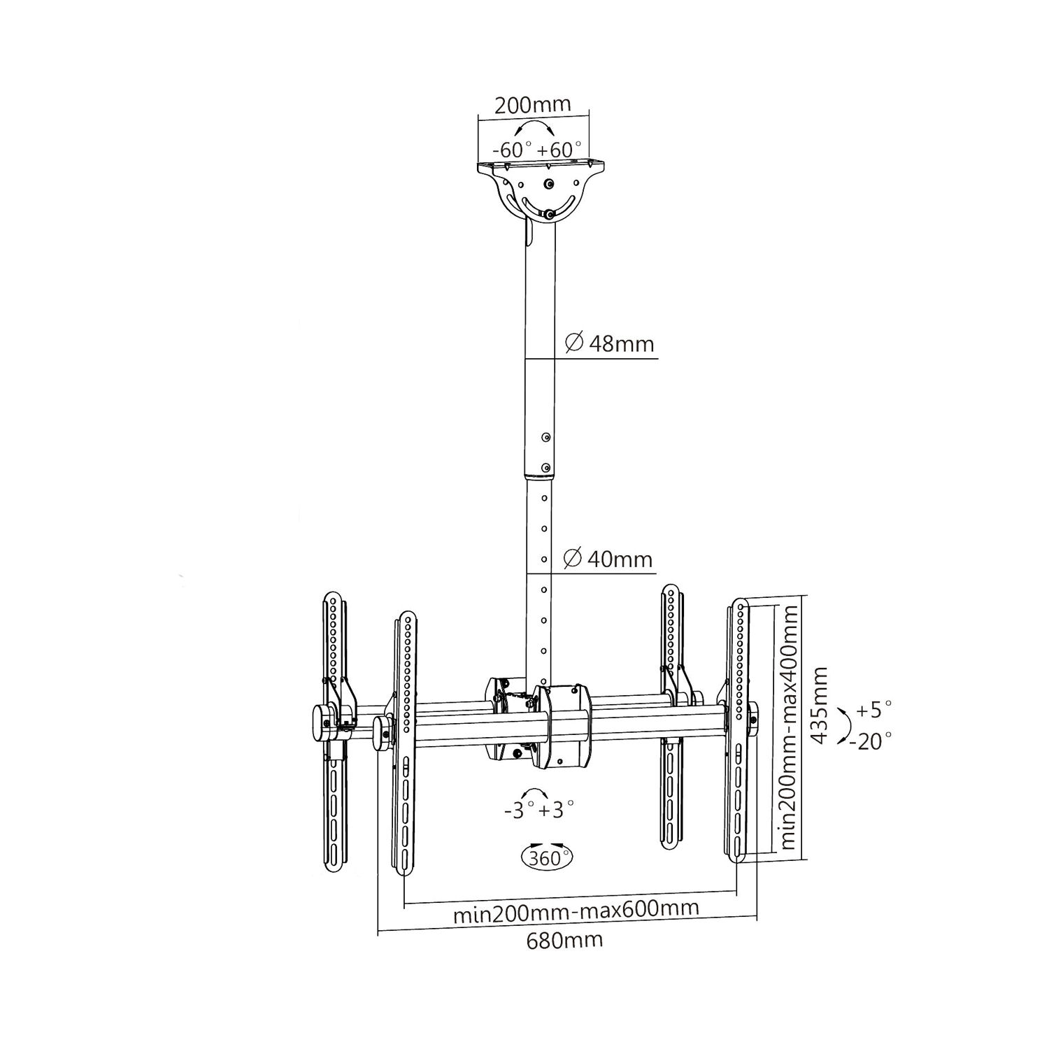 - Support plafond pour 2 écrans TV LCD/LED de 37 à 70 pouces.