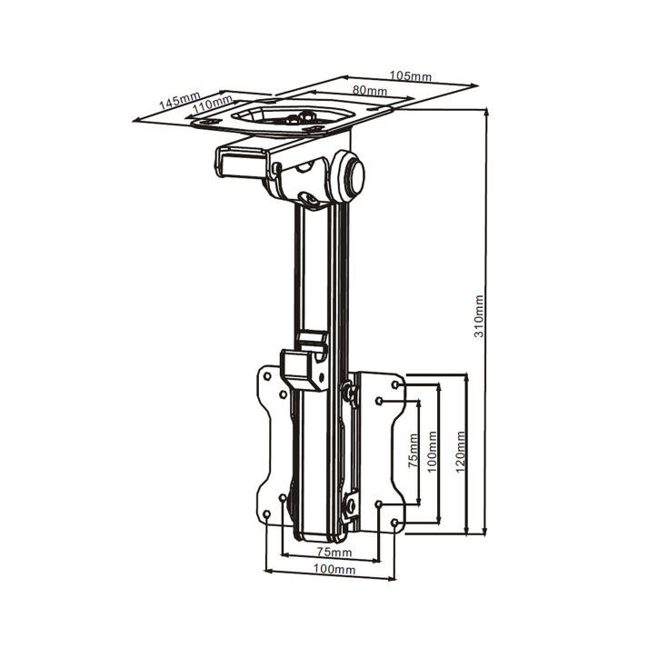 - Hauteur support réglable (Distance plafond / centre téléviseur) : de 18cm min à 40cm maximum.