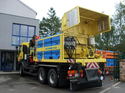 - L’épandage se fait à l’aide de buses de projection installées sur une rampe à l’arrière du camion