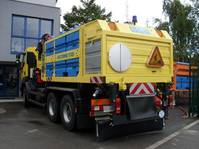 - Largeur d'épandage réglable jusqu’à 13 mètres (2 ou 3 voies de circulation + bande d’arrêt d’urgence) géré par des électrovannes pneumatiques