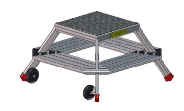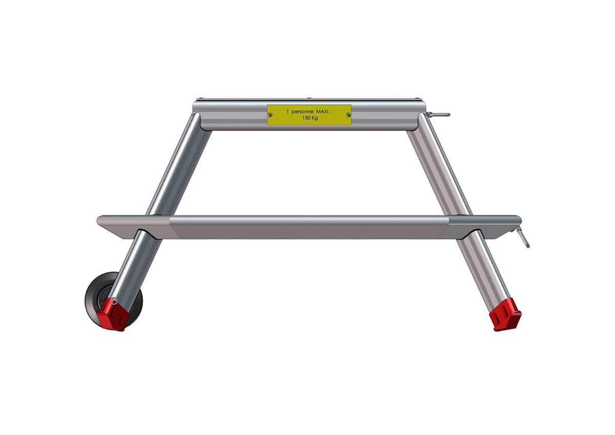 Sa plateforme en aluminium strié assure une excellente stabilité, tandis que les marches antidérapantes garantissent une sécurité optimale pour l'opérateur.