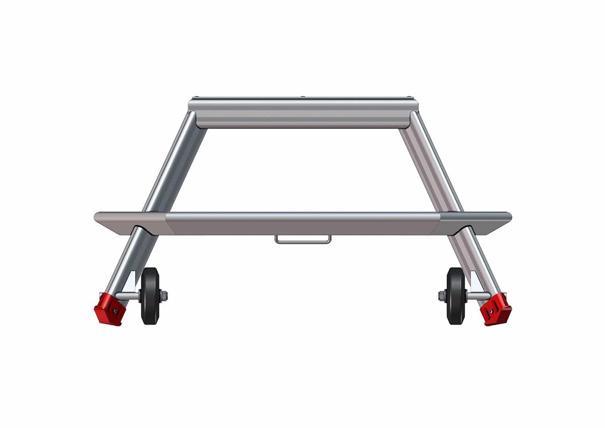 Les roues non porteuses, en position de travail, complètent ce dispositif en améliorant la stabilité sans compromettre la maniabilité.