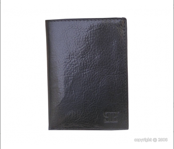 Petit conférencier en cuir de coloris noir dont l'intérieur, présente dans sa partie droite deux poches plates dont l'une permet de fixer un bloc-notes de format A6 et dans sa partie gauche une poche plate ainsi que six emplacements pour cartes de crédit et cartes de visite.