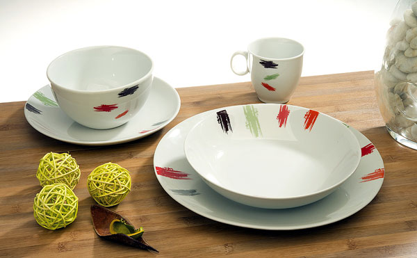 Bonjour Faites vous toujours la vaisselle balnche avec les liserets de couleur vert/rouge/noir ou orange. Merci pour votre retour Claire