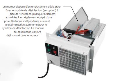 Le vestiaire séchant chauffant intègre une prise électrique dédiée au branchement d’un module de désinfection et de purification d’air en option.