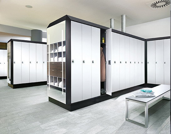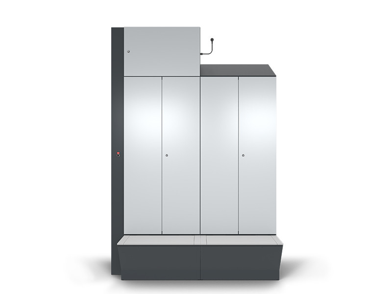 Ce modèle s’intègre dans les espaces vestiaires, ateliers ou locaux sociaux, où le rangement sécurisé et ordonné est nécessaire.