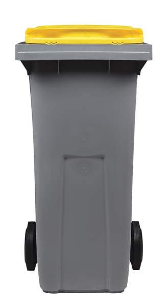 Réf. TC : 112294015Conteneur à déchets roulant Sans barre ventrale 240 Gris / Jaune 580 x 735 x 1070