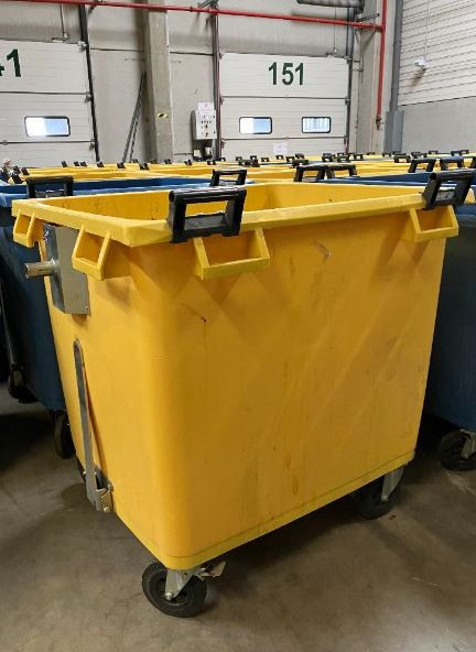 Conteneurs roulants utilisés pour la logistique interne des cartons et des films plastiques.