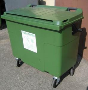 Demande de devis pour 4 conteneurs roulants d"environ 700 litres: cuve de couleur verte et couvercle vert.