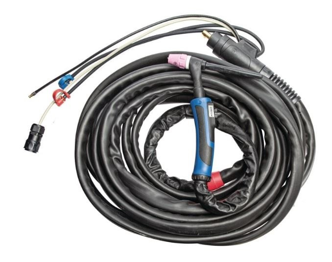 L'ensemble de tuyaux de la torche est conçu pour être léger et flexible, ce qui facilite la maniabilité de l'outil pendant le soudage.
