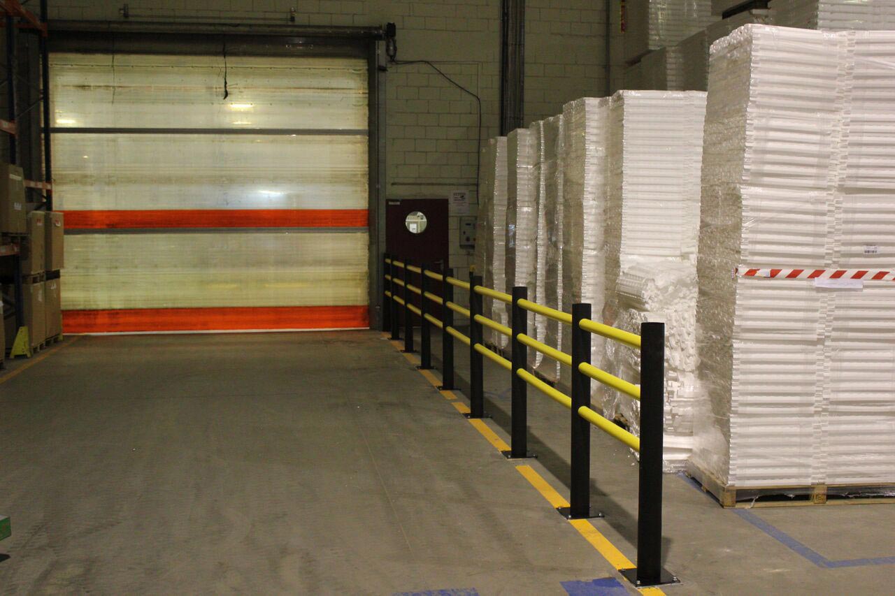Besoin de 2 longueurs linéaires de 3m et 2m40 La fixation au sol doit permettre un démontage facile pour un accès maintenance 1 à 3 fois par an. Pas de circulation de chariots, seulement piétons et transpalettes