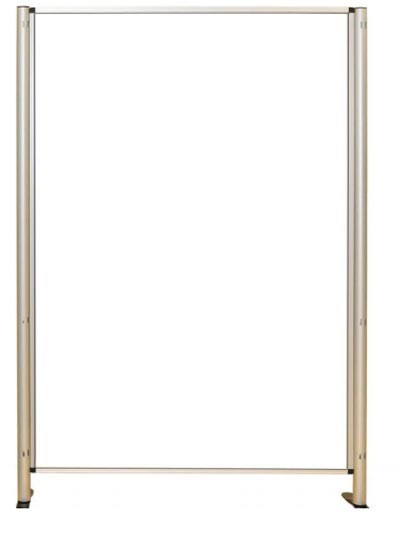 - Accrochage par fixations métalliques spécifiques sur pieds. (Vendus à l’unité, séparément du panneau d’exposition)