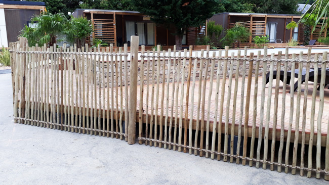 Cette clôture est réalisée à partir de rondins naturels d'eucalyptus : - Aspect naturel des rondins d'eucalyptus qui blanchissent au fil du temps. - Originalité des formes irrégulières de chaque modèle. - Pureté des rondins naturels d'eucalyptus qui sont lavés et séchés avant traitement. - Durabilité grâce au traitement classe 3 ou 4 au Tanalith E. - Garanti sans arsenic selon les normes européennes.