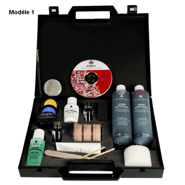 Ce kit de maquillage est réalisé en PVC de couleur noir, il contient tout le nécessaire pour simuler les blessures…. (Sang artificiel, fard crème jaune, bleu, noir, rouge-sang, éponges, pinceau, etc) et par conséquent former convenablement les futurs secouristes.