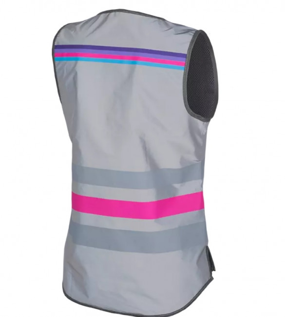 Gilet disponible en deux coloris réfléchissants : blanc/rose ou blanc/jaune.