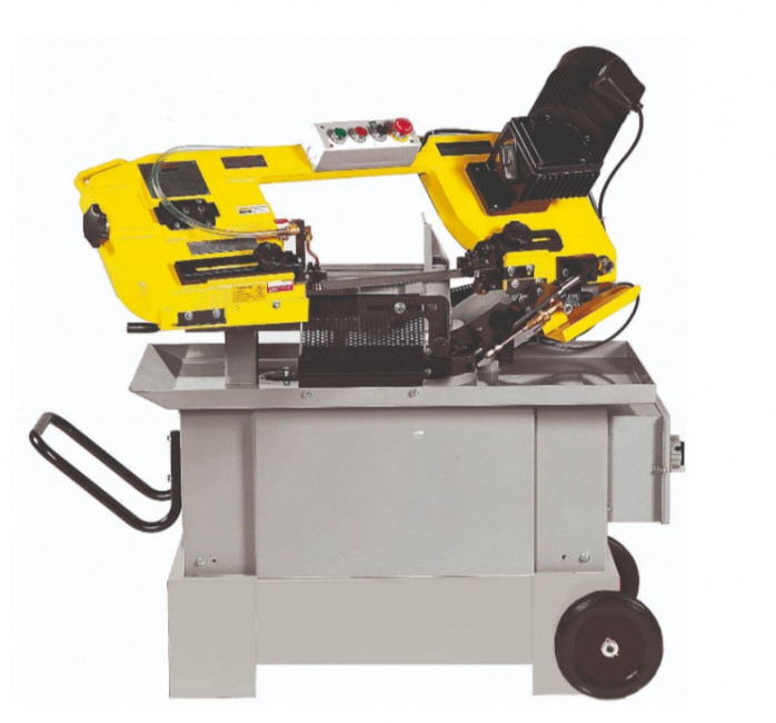L'archet pivotant de cette scie à ruban vous permet de réaliser des coupes angulaires jusqu'à 45 degrés.