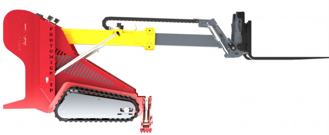 Il possède un bras télescopique équipé d'un système d'accrochage rapide des godets ou accessoires pouvant lever une charge de 300kg à 3m00, 200kg à 3m30 ou 600kg à 60cm, moteurs de chenilles d'une puissance de 19kw chacun, d'un moteur thermique de 15 à 23ch suivant modèle.