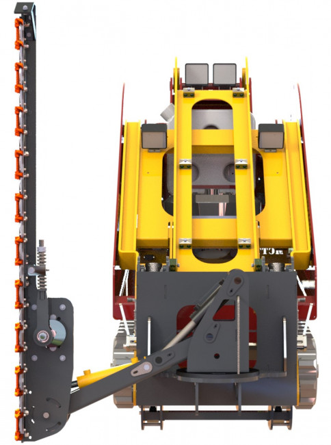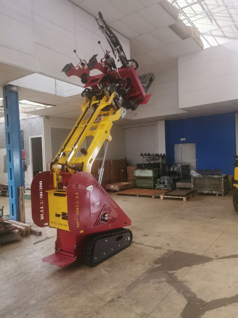 Il est équipé d'un bras muni d'une correction de niveau automatique du godet et d'un système d'accrochage rapide pour les godets ou autres accessoires, compatible avec les télescopiques MTLC. Ce bras peut lever une charge de 300 kg à 2,70 m.