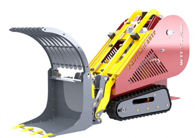 PROTOMICROTP est fier de vous présenter le Micro-Chargeur MCTT 2700-300. Avec une largeur de 85 cm, ce modèle, élaboré dans nos ateliers, répond à une demande de polyvalence : charger, niveler, lever des charges, transporter, déblayer, et bien plus encore.