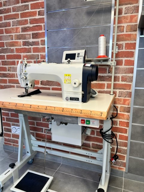 Machine à coudre industrielle permettant une couture de qualité pour différents types de textiles.