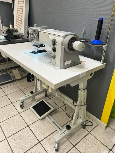 Cette piqueuse vous est livrée avec avec une large table 120x60cm, un bâti roulettes, ainsi qu'un moteur G60 220V + synchro.