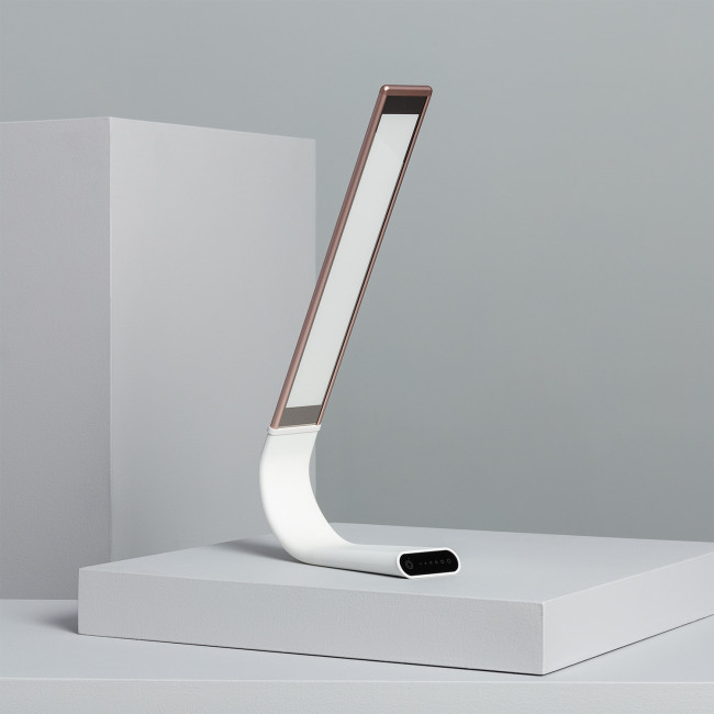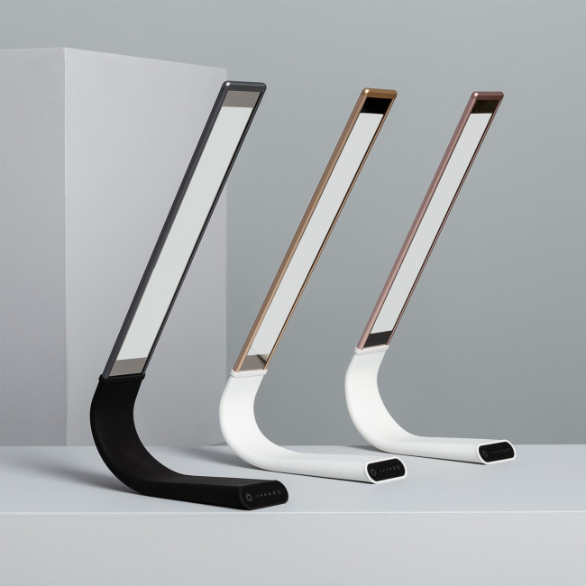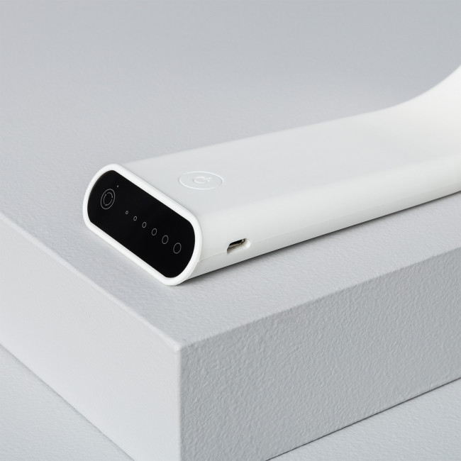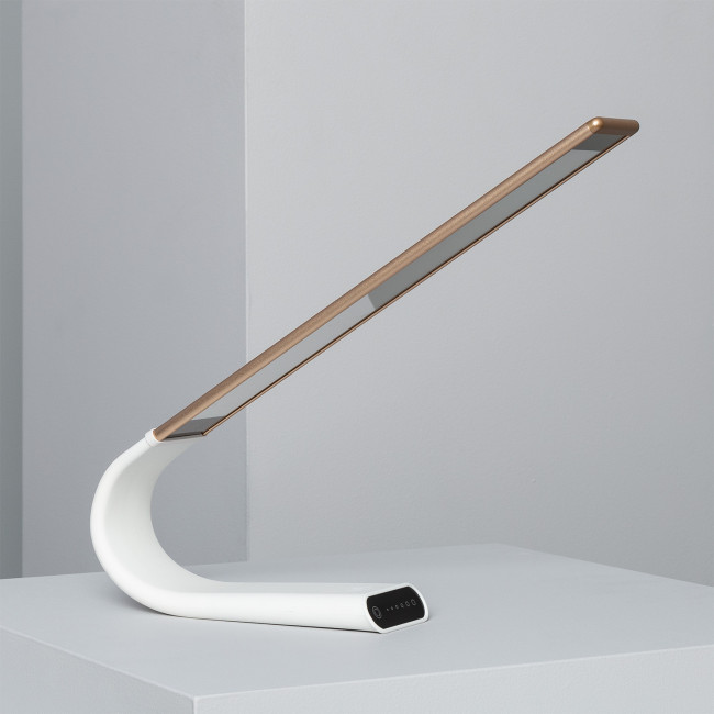 Le corps a une inclinaison verticale réglable de 25° à 180°. Il peut être branché au secteur ou à n'importe quel appareil via une connexion USB (câble USB 5V/1A inclus). Avec un diffuseur anti-éblouissant, elle dispose de 2 boutons tactiles (on/off et changement de température de couleur) et sa luminosité peut être réglée en 6 intensités différentes au moyen du contrôle tactile. De plus, sur le bouton du changement de température de couleur, a un indicateur LED qui vous informe de l'état de la batterie de l'appareil : bleu (lorsqu'il reste 10 à 20 minutes et qu'il faut donc recharger) et rouge (lors de la charge).