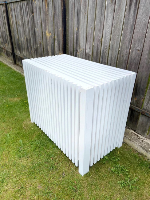Ce cache climatiseur en bois est une solution idéale pour offrir à la fois style, protection et performance à votre unité de climatisation.