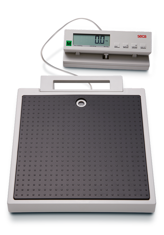 L'écran peut être installé séparément sur un mur ou posé sur un bureau approprié pour peser les enfants dans les écoles et autres centres médicaux.