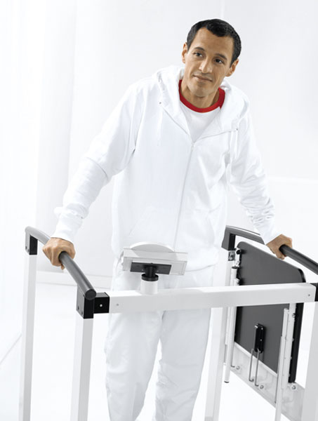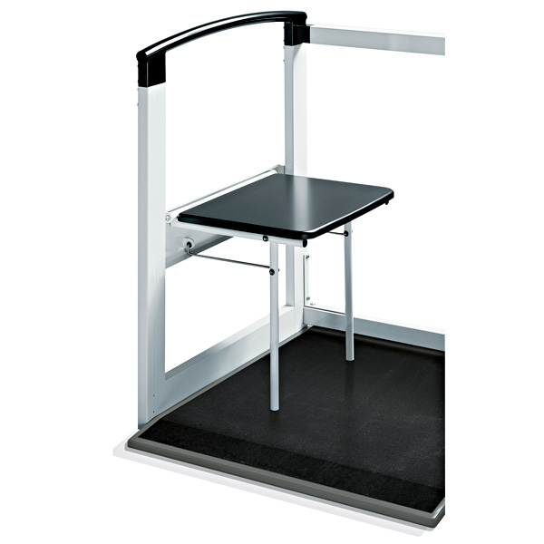 Sans transformation : en position debout grâce à une rampe stable, en position assise grâce à un siège rabattable intégré et en fauteuil roulant grâce à une grande plateforme (80 x 84 cm)