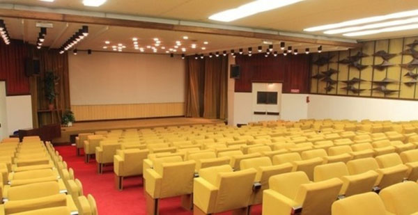 amphithéâtre de 300 places, équipé audio et vidéo, d’une scène modulable et de cabines de traduction.