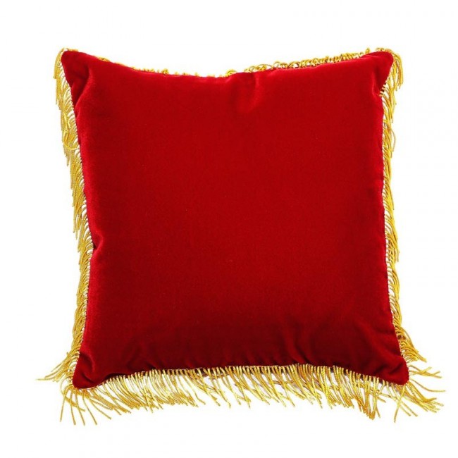 - d"un coussin de cérémonie rouge de 35x35cm avec frange doré